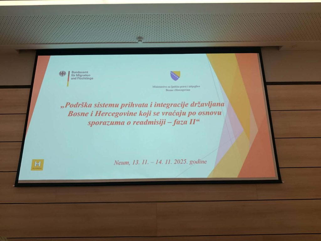 Predstavnici Zavoda za bolesti ovisnosti Kantona Sarajevo učestvovali su na finalnom Plenarnom okruglom stolu održanom u okviru projekta „Podrška sistemu prihvata i integracije državljana Bosne i Hercegovine koji se vraćaju po osnovu sporazuma o readmisiji – faza II“. Događaj je organizovalo Ministarstvo za ljudska prava i izbjeglice BiH, u saradnji sa implementing partnerom Hilfswerk International, a održan je u Neumu od 12. do 14. novembra 2025. godine.